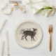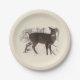 These artistic, decorative paper plates feature a delicate brown white-tailed deer moving through the snowy winter woods. She has stopped and turned her head because she heard a noise. Her big ears are alert. The face has white markings around the eyes and nose.