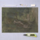 This design features a painting by the French artist Gustave Courbet (1819–1877). It shows an adult deer climbing a tree in a verdant woodland as it eats leaves that are strewn around the tree's trunk. Beside the mature deer there is also a young fawn who is watching and attempting to eat some leaves that are lower down the tree. There is a dirt path running through the forest, to the right of the tall tress that the deer are feeding from. It is a wonderful scene that displays that inspiring beauty of nature.
