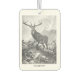 Beautiful black and white vintage illustration of deer in the high mountains. A male deer with antlers is followed by two other deer on the side of a mountain with mountains in the distance. Personalise with your name or message in black font.