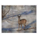 A female deer standing in the snow near a stream on a cold winter day in New York.
