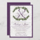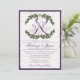 Sketched look deer in a wreath of foliage with heart and monogram wedding invitation in plum purple. Rustic country birch and burlap inspirations for your woodland or barn wedding event.