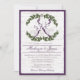 Sketched look deer in a wreath of foliage with heart and monogram wedding invitation in plum purple. Rustic country birch and burlap inspirations for your woodland or barn wedding event.