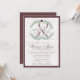 Sketched look deer in a wreath of foliage with heart and monogram wedding invitation in sage and earthy wine tones. Rustic country birch and burlap inspirations for your woodland or barn wedding event.