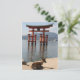 Postcard of the Itsukushima Shrine, Miyajima, Japan with deer in foreground.