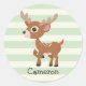 Deer on Pastel Green Stripes Classic Round Sticker