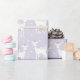 NewParkLane - Cute Christmas Wrapping paper, with a pattern of deer and a snowy background in soft lilac, and 'Merry Christmas' in glittery gold script typography.