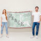 Deer Peace and Good Will holiday throw, features a light blue background with lots of pretty white snowflakes, fancy grey text that reads Peace, and a silhouette white deer! Smaller grey text reads "...and on earth, peace and good will towards men." This pretty holiday throw is a great gift for yourself or someone you love and will become part of your Christmas traditions!