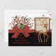 Enjoy this beautiful hand-painted holiday postcard, which you can send to your family or relatives. It features a cute deer. The bottom is black with customised text and a red bow in the middle that separates the black bottom from the white top, with beautifully crafted floral above the bow. Easily update the greeting to make it yours. Merry Christmas!