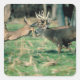 Deer running in forest square sticker
