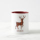 A lovely two tone design, the outside of this coffee mug is white with red on the inside and handles. The design features a male deer with a red and black plaid colour scheme. Your name is written underneath in cool red text. Purchase yours today!