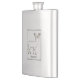 Handsome metal flask with graphics of a engraved looking deer silhouette. Personalise the name to suit your needs. Great for hunters and special occasion gift giving.