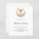 An elegant white background. Decorated with a green pine wreath and a cute deer. Christmas Party written with modern and trendy large hand lettered style script. Personalise and add your party information.