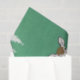This winter scene vintage illustration has a lone brown deer standing in the snow surrounded by pine trees against a minty green background with the simple word Peace. Great message of Peace to send anytime of the year. See my store Art by MAR for matching products with this design.