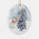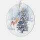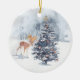 This series was inspired by the line "let heaven and nature sing" in the Christmas carol Joy to the World. In this original watercolor the deer and squirrel decorating the tree while a bluebird watches.