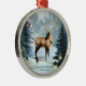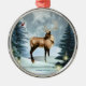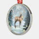 Lovely digital art buck deer winter scene digital art silver framed style ornament. Available in different shapes! This silver art ornament features a deer in a beautiful winter scene with glowing lanterns, candles snow covered land, and trees, and a little cardinal friend too! All on a lovely large moon lit background, and in wintery shades of whites, and blues! The art is displayed inside a silver framed look ornament. Back of ornament is silver. It hangs from a lovely red satin ribbon. A wonderful addition to your ornament collection, holiday decor or as a cute little holiday gift for family and friends. For more holiday digital art home decor, greeting cards and other wonderful gift items, please visit our shop!