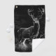 In this black and white drawing, a majestic deer with antlers is depicted standing in the middle of a peaceful and serene natural setting. The deer is drawn with intricate details and a realistic approach, capturing the essence of its wild beauty.
