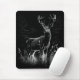 In this black and white drawing, a majestic deer with antlers is depicted standing in the middle of a peaceful and serene natural setting. The deer is drawn with intricate details and a realistic approach, capturing the essence of its wild beauty.