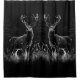 In this black and white drawing, a majestic deer with antlers is depicted standing in the middle of a peaceful and serene natural setting. The deer is drawn with intricate details and a realistic approach, capturing the essence of its wild beauty.