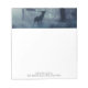 Notepad with a photo of a regal deer with antlers standing in a shadowy forest among sunlit trees. Snow falling all around.