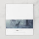 Table place cards with a photo of a regal deer with antlers standing in a shadowy forest among sunlit trees. Snow falling all around. Suitable for handwriting your personalised details.