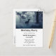 A party invitation postcard with a photo of a regal deer with antlers standing in a dark forest.