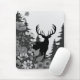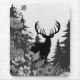Deer emerges from pine trees and is surrounded by wildflowers in simple wildlife design.