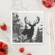 Deer emerges from pine trees and is surrounded by wildflowers in simple wildlife design.