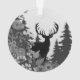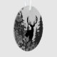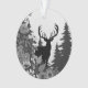 Deer emerges from pine trees and is surrounded by wildflowers in simple wildlife design.