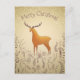 Christmas card with a deer surrounded by foliage and snowflakes. Optional wording on the back with return address for easy mailing.