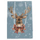 Deer With Plaid Bow Christmas Snow Falling Medium Gift Bag