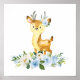 Deer, Woodland Animals, Boho, Blue Flowers Poster
