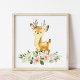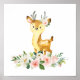 Deer, Woodland Animals, Boho, Pink Flowers Poster