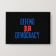 Show your support for our Constitution and Democracy with this stylish "Defend Our Democracy" button/pin. Features a black background with "Defend" and "Democracy" printed in blue, with "Our" printed in red.