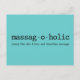 Who says Massage Therapists can't be hip and peace-lovin' hippies at he same time? The designer of the Rubs to Riches line of products disagrees. She extracted influences from pop culture, rock n roll, and even graffiti art to breath new life into long standing Massage Therapy Industry Insider jokes. These Massagoholic products were influenced by the the popular phrase "I'm addicted to massage" and merged with the font of mid century typewriters. Subtly yet effectively market your business with these humourous and hip products designed to get people asking "when can I schedule and appointment with you?"