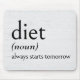 Definition of DIET in black text on a whitewashed wood background.