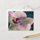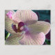 A stunning close-up photo of a beautiful Del-Ray Orchid flower on a postcard.