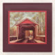 This design features an image of the red Ashland covered bridge - sometimes called the Barley Mill Bridge - in upper Delaware. The oldest covered bridge in Delaware, this historic, beautiful bridge is located near the towns and villages of Hockessin, Greenville, Yorklyn, and Wilmington. This image is derived from an original photo with painterly effects applied, and it's available with different combinations of red, cream, and brown borders. This version as a red border and a brown background.
