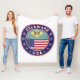 Badge of Delaware with flag of Delaware and flag of USA colours, rounded shape.
