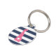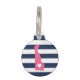 Let your furry friend show some home state pride with this cute Delaware ID tag. Design features a white silhouette map of the state of Delaware in pink with a white heart inside, on a preppy navy blue and white stripe background. Add your pet's name and contact information to the back in white lettering on a pink background.