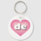 This key chain features a calm, cool pink heart with a white-washed centre containing the bold, white, rounded lower case letters de, a playful abbreviation for Delaware, the first state.