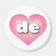 This magnet features a calm, cool pink heart with a white-washed centre containing the bold, white, rounded lower case letters de, a playful abbreviation for the state of Delaware, the first state.