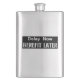 The product is a good size and came exactly as it was pictured. The lid is not attached to the flask, which could be dangerous on drunken nights... The print came out surprisingly well and looks very sharp. Would definitely recommend.