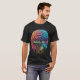 I give wanted to give this a 4 instead of a 5 because these Basic DARK T0shirts run unexpectedly SLIM or Narrow. Which is great if you do not have a potbelly, but I have a paunch. It isn't the shirt's fault that I've got a beer belly. The design and shirt itself is a quality cotton shirt. The color is more of a deep purple, but still a very pretty color. The Basic DARK T-shirts run a bit SLIMMER than the Basic Ts. The neck is a fraction narrower (or seems to be narrower) also. I'm a paunchy middle-aged woman and my neck is 12 inches (31cm) thick and the neckline fell about the same as in the photo of the man, and I had the desire to tug it a bit. So if you're a thick necked man or like loose shirts, be aware these are slimmer shirts. Once I get rid of my lockdown paunch it'll look great. The shirt washed well in cold water with no apparent bleeding. We don't have a dryer, so it hung dry. Did not shrink. Love the colors and the design. The design looks smaller on my shirt than it does on the model on-line. But still, it looks good on the shirt. The printing looks as it does on the model, just the size seems fractionally smaller. Washed garment in cold water, hung dry and design appeared unaffected.