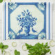 French Country Chic, Dutch Willow style floral tile replica image of Antique Blue Birds Delft Blue vase with flowers.