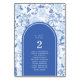 This elegant design features elegant delft blue and white chinoiserie botanical flowers and birds, complimented with modern typography.