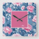 delft blue & pink vintage Beautiful Garden Flowers Square Wall Clock