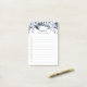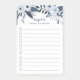 Chic personalised note pad features a top border of blue flowers and botanicals inspired by Dutch blue Delft pottery. Personalise with two lines of custom text in modern block and handwritten script lettering; shown with "things to do" and your name. 11 lines with checkboxes help you keep track of all your important tasks!
