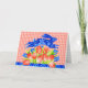 A rabbit in blue Delft finery amongst the Spring Tulips on a pretty gingham background. From hand-drawn and painted Anni Arts illustrations. Personalise your greeting inside.
