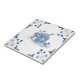 Blue and white tile reproduced on a smooth surface 4.25" or 6" ceramic tile. Perfect for interior tile wall accents, backsplashes, fireplace surrounds, bathroom and showers walls, kitchens and craft projects. Not intended for outdoor use. Our tiles are copies of costly authentic original antique tiles. Suggestion: Order one tile to review before placing a large order.