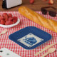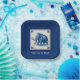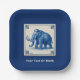 A humourous, monotone, blue woolly mammoth (mammathus primigenius) in the style of a Delft tile. Customise by adding your own text.